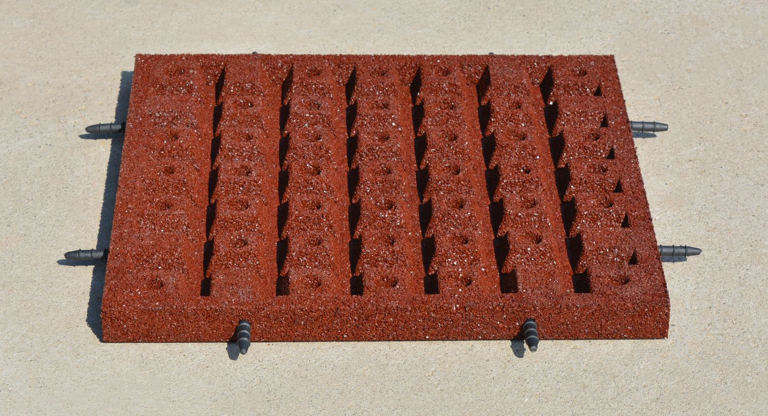 Die Fallschutzplatte FX hat eine Noppendrainage mit einem stabilisierenden Steg auf der Unterseite. Die Noppendrainage ist für einen TOP Fallschutz und eine hohe Sickerfähigkeit veranwortlich. Die FX Platte kommt aus unserer neuen automatisierten Produktion und ist daher besonders nachhaltig. Das Recyclinggranulat wird unter der Verwendung von Solarstrom gepresst. Die Nachhaltigkeit besteht in der Vermeidung von Produktionsabfällen und der Energieeffizienz des Maschinenparks. Die FX Reihe gibt es in allen bisher angebotenen Stärken von 3 cm bis 8 cm mit Fallhöhen bis 300 cm. Auf Grund der hochwertigen Bindemittel, dem ausgewählten Recyclinggranulat und der standardisierten Produktion ist die Fallschutzplatte ein verlässlicher Partner für jeden geraden und festen Untergrund.